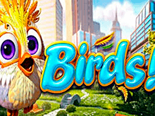 На экране эмулятора Птицы! вы увидите небольшую городскую улочку. На первом плане на проводах сидят забавные птички, на которых невозможно смотреть без улыбки. В автомате нет барабанов. Вместо них на игровом поле между фонарными столбами натянуты провода, на которых и восседают главные герои игры. Нажимая кнопку «Старт», птички улетают, а на их место приземляются новые. От трех одинаковых пернатых создают выигрышную комбинацию, и вы получаете прибыль. Птицы, входящие в состав призового сочетания, сорвутся со своего насеста и улетят, а их место займут новые пичуги. Это опция получила название «Лавина». За одну ставку вы можете получить несколько выплат.