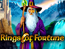 Выигрышные сочетания формируются в результате вращения катушек. На линии должно появиться от двух одинаковых картинок, чтобы вы получили вознаграждение. Сумму выигрыша можно посмотреть в таблице выплат. Чаще составлять призовые сочетания вам поможет Вайлд, роль которого играет седой волшебник. Он заменяет недостающие в сочетаниях изображения и дарит джекпот в 10 000 кредитов за пять своих портретов. Кольцо выполняет функции Скаттера, что дает ему право дарить призы, появляясь на игровом поле вразброс. Три таких изображения запускают раунд фриспинов. Вы получите 15 вращений оплаченных казино. Огромным преимуществом слота Кольца Судьбы является прогрессивный джекпот, который можно получить во время фриспинов, когда все поле заполнится портретами мага.